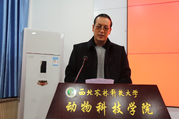 宁县畜牧兽医局李世阳局长讲话,他说学员们能来到国家重点农业大学学习深造机会难得,感谢学院为本次培训做出的努力,要求学员们在为期半个月的培训学习中加强纪律,认真听讲,对杨凌示范区高新农业园区深入考察了解,学以致用,为宁县的贫困村创业致富真正起到创业致富带头人作用。