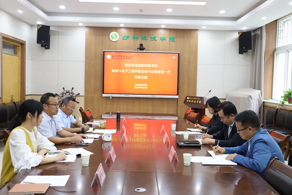 9月27日下午咸阳师范学院物理与电子工程学院党委书记张树昆、党委副书记袁月、学工办主任穆武超一行3人来探花系列 交流,会议在学院104会议室举行,学院党委副书记王力、副院长赵运良及办公室相关同志参加了会议。