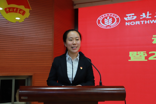 教工第三党支部李聪同志、大学生第三党支部李嬿瑶同志作为获奖代表发言,讲述了如何以榜样力量凝聚师生人心,表达了立志“听党话、跟党走”,为学院和学校“双一流”建设贡献党员力量,为祖国的繁荣昌盛贡献西农智慧的坚定决心与信心。同时,全体参会党员重温入党誓词。