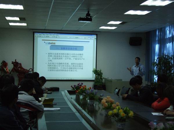 深圳金新农股份有限公司是一家从事乳猪教槽料、猪用复合预混料、猪用配合料及猪用浓缩料的研发、生产与销售的企业,是中国饲料行业研发生产猪用饲料的现代化科技型农牧企业之一。此次招聘宣讲会的召开,加强了学院与社会上各企业之间的联系,也为毕业生提供了更多的就业岗位和发展机遇。