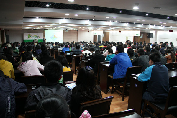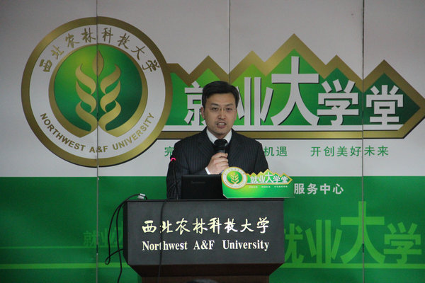 2011年11月10日晚,由探花系列 承办的就业大学堂之“职业的道路如何越走越宽――打造职业生涯的蓝图”报告会在南校区国际交流中心207举行。山东亚太中慧集团人力资源总监翟继满先生应邀做报告。报告会由校就业指导中心主任胥耀平主持。