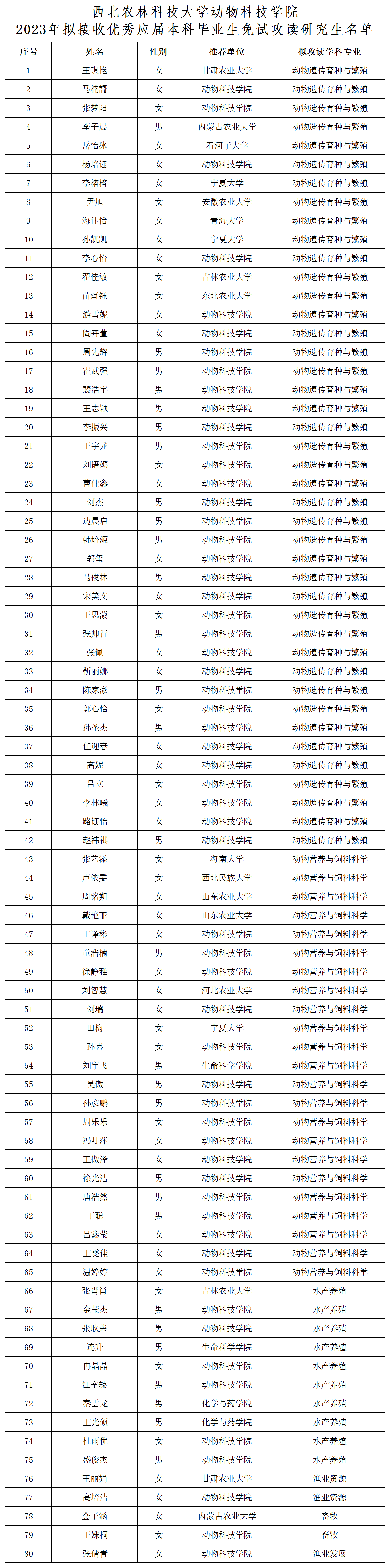根据学校《关于做好2023年接收优秀应届本科生免试攻读研究生工作的通知》及学院《关于做好2023年接收优秀应届本科毕业生免试攻读硕士学位研究生工作的通知》要求,经学生本人申请,学院推免工作复试小组考核,学院推免生遴选工作领导小组审核,拟接收刘瑞等80名本科生免试攻读研究生。现将名单予以公示(见附件),公示期为9月28日-9月30日。公示期间,若对拟录取结果有异议,请以书面形式向学院推免工作监督小组反映,联系电话:029-87092120。