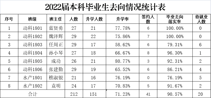 学院2022届毕业生403人(本科生212人、硕士研究生160人、博士研究生31人)。截至6月23日,学院毕业生总体去向落实率84.62%,本科生去向落实率为90.57%;研究生去向落实率为78.01%。