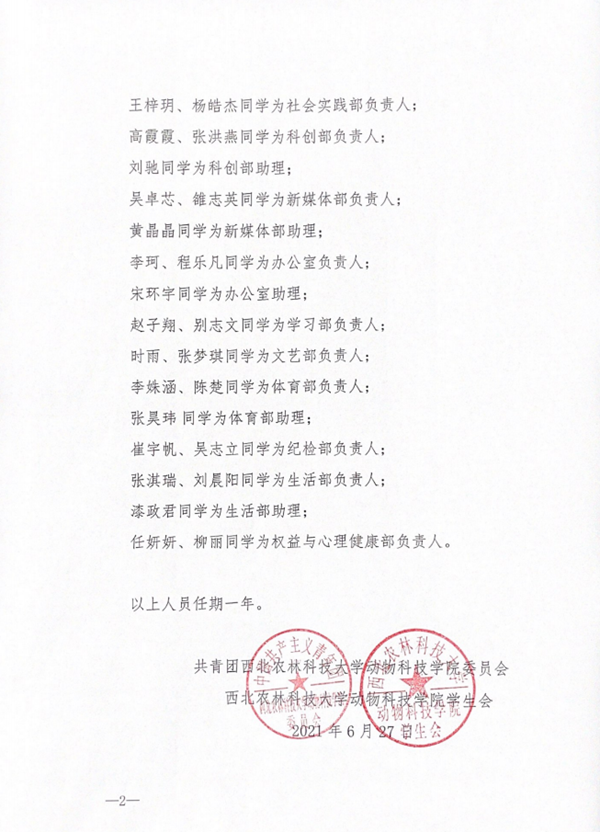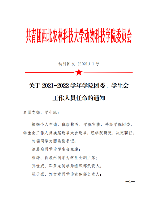 » 探花系列 2021-2022学年团委、学生会学生工作人员任命的通知