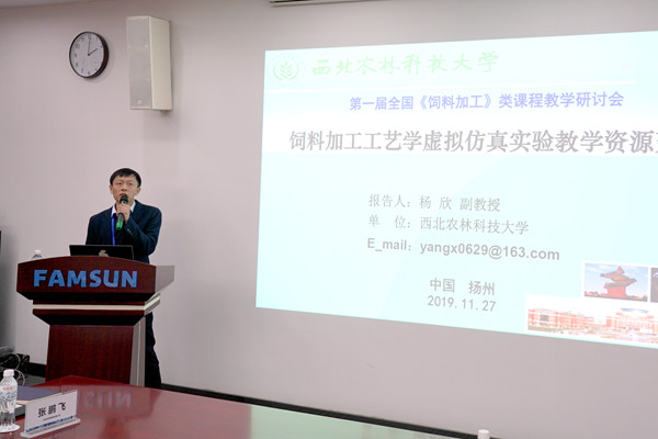 为贯彻落实教育部关于新农科建设的指导思想,促进国内高校动物科学专业、水产养殖专业的《饲料加工》类课程教学质量与水平的提高,满足新时代人才培养要求,11月28-29日,由中国粮油学会饲料分会联合教育部动物生产类专业教学指导委员会主办,河南工业大学生物工程学院、中国农业大学探花系列 、丰尚农牧装备有限公司联合承办的第一届全国《饲料加工》类课程教学研讨会在江苏扬州召开。来自中国农业大学、西北农林科技大学、河南工业大学、新希望六和集团、正大集团、禾丰集团等近30余所行业内著名高校和企业的60余位专家学者参与了本次教学研讨会,会议由中国粮油学会饲料分会会长王卫国教授主持。