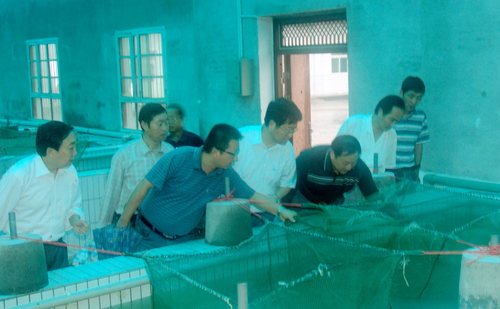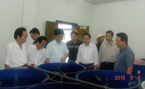 调研组先后察看了试验站苗种培育车间、室内循环水系统、培训教授、实验室等设施条件,听取了首席专家的工作汇报,与试验站科技人员进行了工作交流。