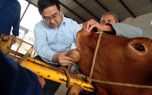 昝林森教授指导养牛户判定秦川牛年龄