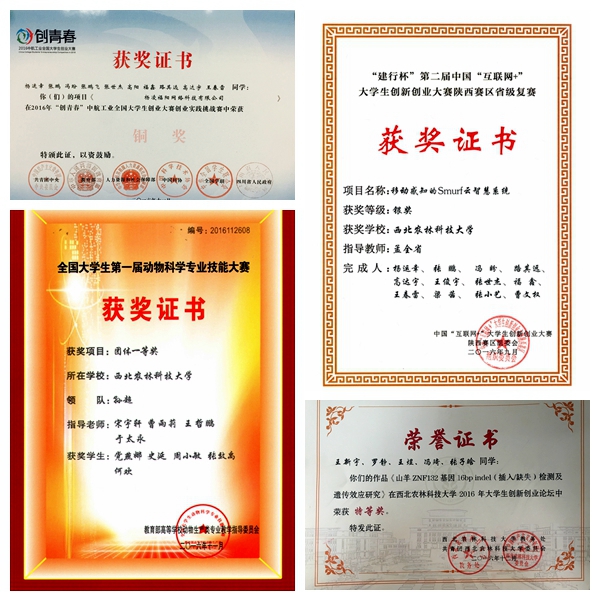 在教务处、研究生院、团委联合主办的第五届大学生创新创业论坛赛事活动中,探花系列 学子取得骄人成绩。农科分论坛,《山羊ZNF132基因16bp indel(插入/缺失)检测及遗传效应研究》项目获唯一特等奖、《Systemtic screening identifies synergistic combiations of traditional Chinese medicines and ingredients against Dactylogyrus infections using a goldfish model》项目获一等奖、《硅对盐胁迫下柳枝稷幼苗光合参数和活性氧代谢的影响》项目获二等奖、《Nitric Oxide Mediates Antioxidant Denfense and Plant Hormones in Roots of Tall Fescure(Festuca arundinacea Schreb)to Mowing》项目获三等奖。理科分论坛,《牛肌肉发育相关长链非编码RNA lnc9050基因遗传变异研究》项目获二等奖。研究生分论坛,《利用数学期望(ME)策略检测黄牛PRNP基因3'UTR 14-bp插入/缺失(indel)低频突变研究》项目获三等奖。