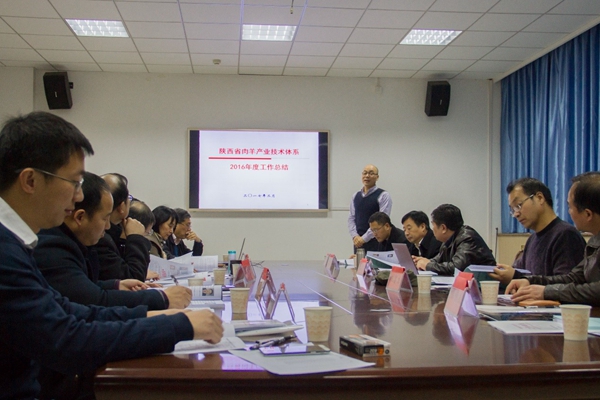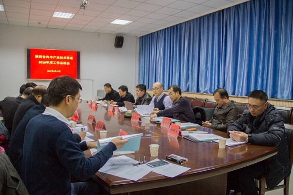 首席科学家张恩平教授代表体系汇报了肉羊2016年度体系开展的主要工作。2016年是陕西省肉羊产业技术体系工作元年,体系组织专家对陕西肉羊产业进行了全面深入调研,聚焦陕西肉羊产业发展技术需求,围绕肉羊2年3胎高效繁殖技术体系和精准营养高效饲养技术体系开展了8项核心技术研发与攻关、技术集成与示范,提升肉羊产业技术水平;举办了3场论坛和研讨会,分析肉羊产业发展趋势和市场变化规律,引领我省肉羊产业健康发展;16位岗位专家长期深入生产一线开展技术培训与指导,解决肉羊生产技术难题。2016年体系岗位科学参与的工作取得多项成果: 2项行业标准获得农业部和陕西省颁布实施、2项科研推广技术成果获省部级科技奖励、申报获批国家和省部级科研推广项目7项、发表与肉羊产业相关的中文期刊研究论文22篇、撰写调研报告3份、参与了省市“十三五”规划制定等。与会领导在听取体系2016年工作总结报告后,充分肯定了肉羊体系专家务实的作风和卓有成效的工作,并分别从学校和学院角度了对肉羊产业技术体系2017年工作提出具体指导意见。首席科学家童建军研究员传达了省农业厅对肉羊体系工作的指导意见。
