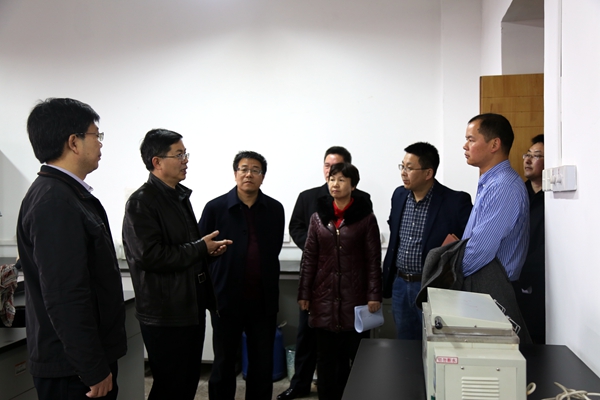 2月20日上午,开课第一天,学校冷畅俭副校长带领校党委校长办公室、教务处、科研院、保卫处、就业指导中心、团委等部门负责同志一行来探花系列 实验管理中心检查教学工作,学院赵延安书记、孙超副院长陪同检查。