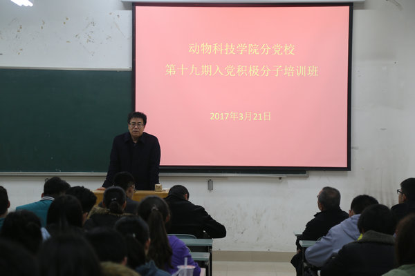 3月21日晚,动科学院分党校第十九期入党积极分子培训班开班。学院党委书记、分党校校长赵延安作动员讲话。