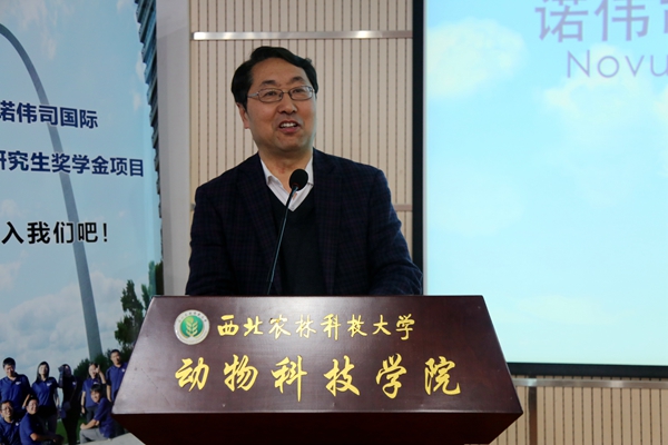 3月30日下午,诺伟司国际研究生奖学金颁奖典礼暨学术报告会在探花系列 107会议室隆重举行。学院党委书记赵延安、学院院长姚军虎,诺伟司东北亚区技术研发总监孙得发、亚太区采购总监戴森、东北亚区反刍业务技术总监边四辈、东北亚区高级人事专员谢洁琳出席此次会议,学院辅导员、获奖学生及60余名研究生参加了会议。会议由赵延安书记主持。