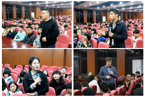 “在工作中,我‘对牛弹琴’;来到这里,今天就要‘对人谈牛’啦”,讲座伊始,Ian Lahiffe先生用流利的普通话与幽默的台风瞬间拉近了与同学们的距离。他擅长音乐,精通普通话,是畜牧行业典型的复合型人才。在报告会中,他以“对中国肉牛行业的一些思考”为切入点,帮助同学们了解行业趋势、探究消费习惯、深挖进货渠道,使得同学们以小见大,从肉牛行业看整个畜牧行业,明晰职业规划、确定持续目标,努力成为社会所需的全面发展的高素质人才。互动环节中,同学们与Ian愉快沟通,畅聊就业前景与职业梦想,“让中国人吃上更安全的品质肉类”如火斗志点燃了志存高远的2017届毕业生们蓬勃向上的青春理想。