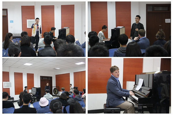 同时,学院充分把握机遇,借助Ian Lahiffe先生的音乐才华与求学背景,为本次就业大学堂上开设第二分会场,举办了一场别开生面的微型音乐分享会。正如音乐会主题所言:“每个人心中都有一首歌”,音乐无国界,唯爱永相随。 “音乐,是最美好的教育方式”,Ian Lahiffe先生用美妙的钢琴与优美的歌声交流文化,传递力量,音乐会特邀嘉宾老师们以及与会同学们也纷纷献唱,现场氛围愉快和谐。