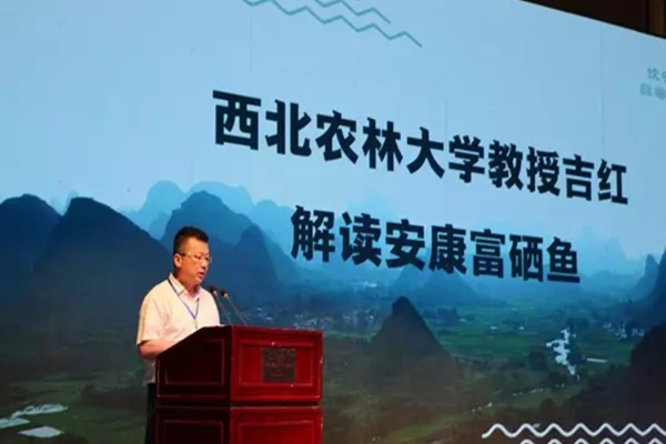6月2日,示范站首席专家吉红教授应邀参加安康市在第21届丝博会---“饮安康水,品富硒鱼”安康富硒鱼推介活动。会上,吉红教授就安康生态富硒鱼的特性及生产作了深入的剖析解读。安康市副市长鲁琦致辞,安康市水利局局长吴平参加了推介会,陕西省水产研究所所长王丰通报了安康地区鱼肉中硒元素含量的检测结果,