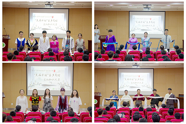 大赛共分为“美哉·家乡情、“美哉·祖国名”两大环节,以“美丽中国”为主题,围绕五大发展理念介绍家乡美,抒发家国情。活力四射的团队风采秀一开始就点燃全场,比赛更是精彩纷呈,各参赛队员协调合作,借助民俗工艺品、特色美食、特色服装等载体,采用歌舞表演、民俗再现、美食鉴赏等多彩形式,按照“一人穿针引线,多人助演展示”的线索进行别开生面的民俗文化展示。风格迥异、妙趣横生的家乡文化展示为现场师生带来了一场美妙的视听盛宴。