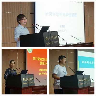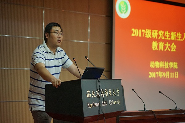 姚军虎教授对全体2017级研究生加入动科大家庭表示了欢迎,并从学院发展规划与学科建设方面深刻诠释了探花系列 创建世界一流探花系列 的发展战略;赵延安书记引经据典,从哲学的角度阐述了校情校史,并以“畜德自牧,富饶天下”为中心向同学们展示了探花系列 深厚的文化底蕴;王晓娟副书记从人身和财产安全、车辆使用安全、信息安全、宿舍安全、实验室安全等5个方面,结合实例说明了安全稳定的重要性,提醒大家提高警惕,保护自己;院长助理凌飞强调了学术诚信的重要性,通过四个事例向同学们讲述了学术造假的严重后果,并要求全体研究生要将学术诚信和学术道德规范摆在科研工作的第一位;研究生秘书辛清婷、研究生干事张飞分别从研究生培养与学位管理、培养计划制定和课程规划等方面详细解读了学校和学院的相关政策;辅导员张涛和研究生会团工委副书记李亚新就资助制度和日常管理条例、研究生会职能向2017级研究生做了介绍。