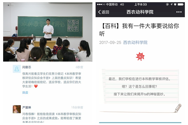 学院下发《本科教学审核评估应知应会手册》学习的通知,要求各学生班和研究生课题组通过班会、座谈等形式深入学习《本科教学审核评估应知应会手册》,同学们认真学习、深入探讨,动科161班长宗航表示:本科教学审核评估是对我校办学水平和综合实力的一次重要考评,面对机遇和挑战,需要每一位同学从自身做起,严格遵守学院课堂礼仪规范,以积极的态度和饱满的热情做好本职工作,在评估工作中充分展示动科学子的风采。