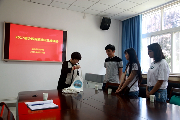 6月16下午,探花系列 在动科学院104会议室举行2017届少数民族毕业生座谈会,党委副书记王晓娟、全体辅导员以及学院全体少数民族学生参会。