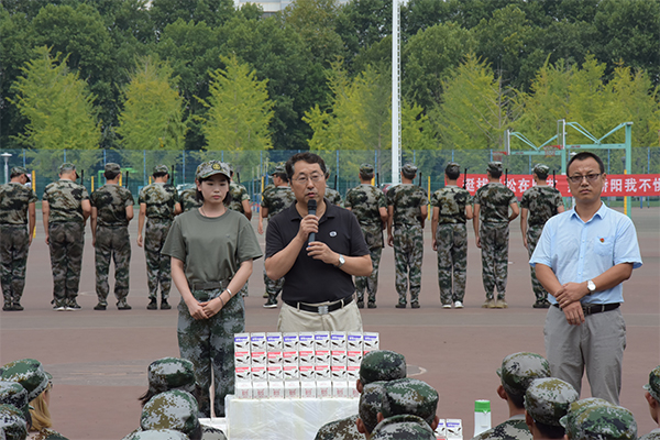 入秋后的一场场秋雨,并没有将原本酷热的天气消除殆尽,训练场上的学员们正挥洒着汗水,磨练着意志,释放着青春活力。4日,学院院长姚军虎、党委副书记王力来到田径场慰问军训中的2018级新同学,带来了不同风味的酸羊奶,学生方阵中响起了阵阵掌声与欢呼。
