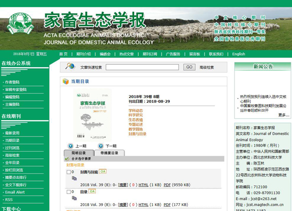近日,北京大学图书馆2017年版(即第8版)《中文核心期刊要目总览》由北京大学出版社出版,《家畜生态学报》入编《中文核心期刊要目总览》2017年版(即第8版)之“畜牧、动物医学、狩猎、蚕、蜂(除草地学、草原学)”类的核心期刊。