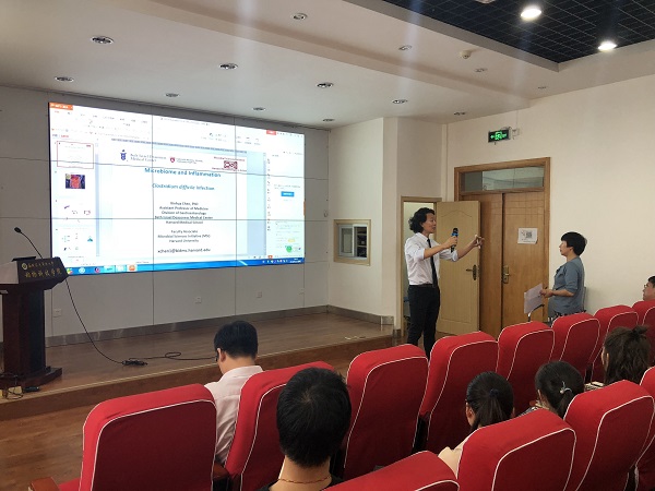 下午,Chen Xinhua教授在107会议室作了题为“Clostridium difficile Infection - Understanding Gut Microbiota and Host Immune Responses”的学术报告。学院相关师生150余人参加报告会,会议由姚军虎教授主持。会上,Chen Xinhua教授介绍了艰难梭菌结肠炎的临床症状及粪便移植技术在艰难梭菌结肠炎治疗中的应用,与会师生与Chen教授进行了深入的交流。此次报告会加深了探花系列 与哈佛医学院的交流与合作,对后续开展相关研究工作具有很大的帮助。