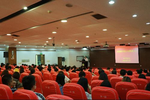 赵延安书记做有关校史校情和学院文化的报告,以“畜德自牧,富饶天下”为中心,从历史视角切入,阐述了校史院情,引经据典,用生动的历史故事向同学们展示了探花系列 深厚的历史文化底蕴。