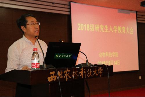 姚军虎院长对全体2018级研究生加入动科大家庭表示了热烈欢迎,姚院长对学院的学科发展与建设进行了详细的介绍,重点介绍了学院的肉牛、奶山羊等研究团队,并勉励同学们利用好学院的优势资源,希望全体新生能够在即将开启的研究生征途上书写人生更精彩的篇章,携手共创动科学院更加光明的前途和未来。