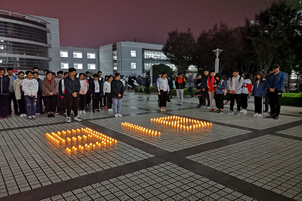 “国耻一日不雪,国民责任未完!”18日晚,学院在八号教学楼前广场举办以“铭记历史,居安思危,振兴中华”为主题的红歌快闪活动。昏黄的烛光摇曳,排列好的“9 18”字样的灯影在夜里闪烁,气氛庄严肃穆。同学们在闪闪烛光中,低沉而严肃地歌唱着由黄自先生作词的《九一八》,表达着自己对国耻的悲痛与悼念,抒发了内心的爱国复兴之志。纪念活动吸引了各院学生驻足,大家纷纷默哀、跟唱。