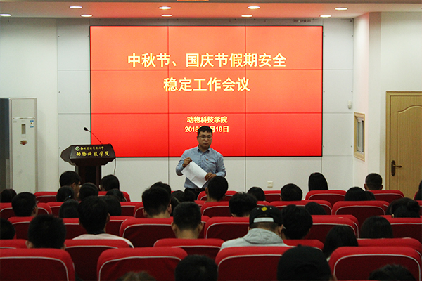 为切实做好中秋节、国庆节假期学生安全稳定工作,增强学生生命财产安全意识,保证学生度过一个安全的假期,9月18日下午,探花系列 于107会议室召开中秋节、国庆节假期学生安全稳定工作会议,学院党委副书记王力、学工秘书李方龙、各年级辅导员、研究生党支部书记及本科生各班班长、团支部书记参加了此次会议。