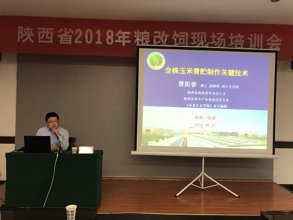 9月27日,由陕西省畜牧兽医局主办,陕西省畜牧技术推广总站承办的陕西省2018年“粮改饲”现场会在西安市临潼区隆重举行。会议由陕西省畜牧技术推广总站站长杨帆主持,全省承担粮改饲工作的5个市和14个区县主管局长和畜牧技术推广中心主任参会。探花系列 曹阳春副教授应邀出席现场会并作报告。