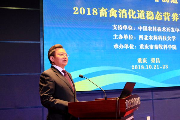 10月21-23日,由我校主持的国家重点研发计划“畜禽肠道健康与消化道微生物互作机制研究”项目中期总结会暨2018“畜禽消化道稳态营养高峰论坛”在重庆荣昌召开。此次会议得到了科技部农村中心的大力支持,由我校主办,重庆市畜牧科学院承办,浙江大学、中国科学院亚热带农业生态研究所、南京农业大学、中国农业大学等23所高校科研单位协办。科技部农村中心有关负责同志、项目主持单位科研院负责同志、国家重点研发项目主持人、项目骨干及团队成员,相关高校科研单位专家、研究生以及企业负责人等90余人参加了会议。重庆市委农工委副书记、重庆市农委副主任王健出席了开幕式。