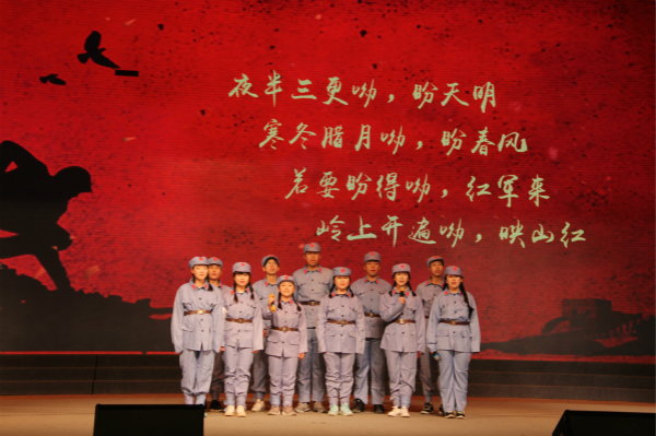 赤影明灭忆曾经,热情洋溢念红军。为发扬红色精神,传承以红色基因为主体的革命精神,以高亢雄壮的气势展现当代大学生锐意进取的风采,11月6日晚,由校团委主办,探花系列 承办的第十八届金秋科技文化艺术节之“我为红色经典代言”文化风采大赛决赛在北绣活动中心顺利举行。马克思主义学院李晓娥教授,王海成副教授,离退休处副处长兼离退休职工服务中心主任金平安,公共艺术教育中心教师、大学生艺术团指导教师罗淑萍组成强大评审团,校团委副书记师燕妮、探花系列 党委副书记王力莅临大赛,与四百余名学生共享此次视觉文化盛宴。