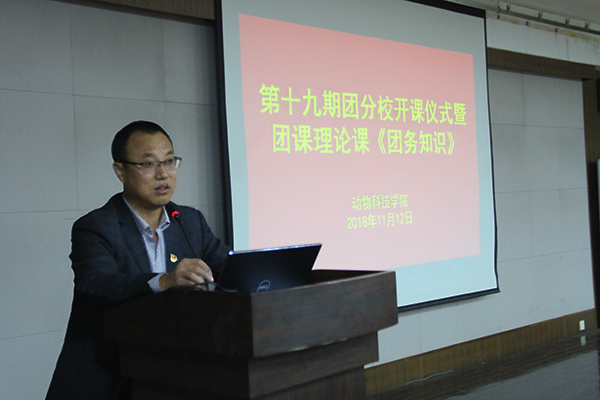 为了对团员进行思想政治教育和团的基本知识教育,提高团员思想理论水平和政治素质,让共青团员坚定跟党走中国特色社会主义道路的信念,成长为中国特色社会主义事业的合格建设者和可靠接班人。动科学院于11月12日晚在机电学院报告厅举办了第十九期团分校开课仪式暨团课理论课《团务知识》。党委副书记王力出席并讲话,分团委书记兼学工秘书李方龙讲授《团务知识》课程,全体辅导员参加会议。