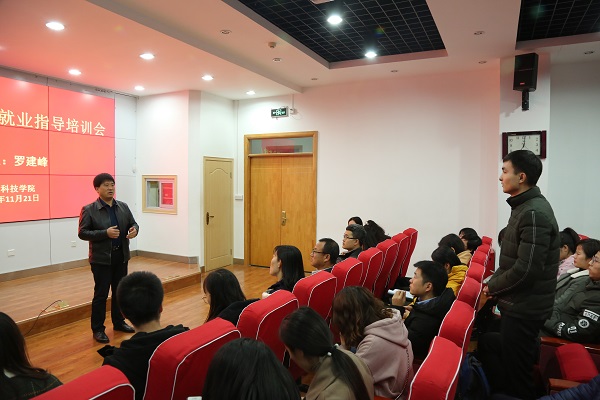 为增强2019届毕业生的就业紧迫感,充分调动求职积极性,引导毕业生了解就业政策、认清就业形势、转变就业观念、实现优质就业,11月21日晚,学院召开了2019届毕业生就业指导培训会。会议邀请就业指导中心副主任罗建峰作报告,会议由学院党委副书记王力主持,全体辅导员及100多名毕业生参加了此次大会。