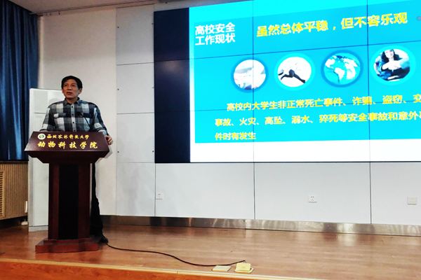 12月18日,学院研究生第九党支部为落实学校党委研究生工作部、科研院、保卫处《关于开展研究生“实验安全教育月”活动的通知》,增强团队研究生的安全意识,营造更安全的实验室环境,特邀请校保卫处副处长王云峰作题为“消除隐患、防治危难——高校安全管理与实践”的报告。陈玉林副校长、张恩平教授、王小龙副教授、张德刚老师出席会议。