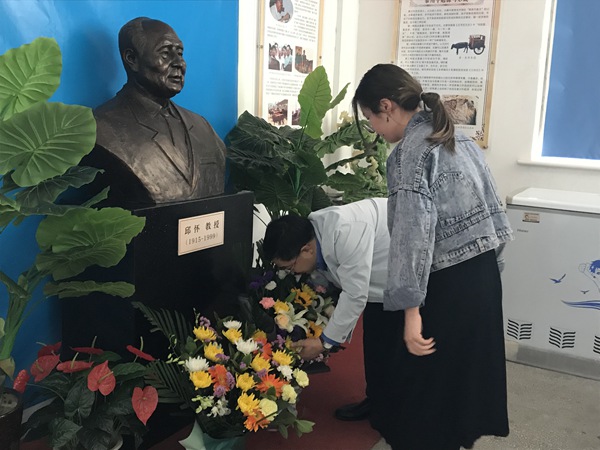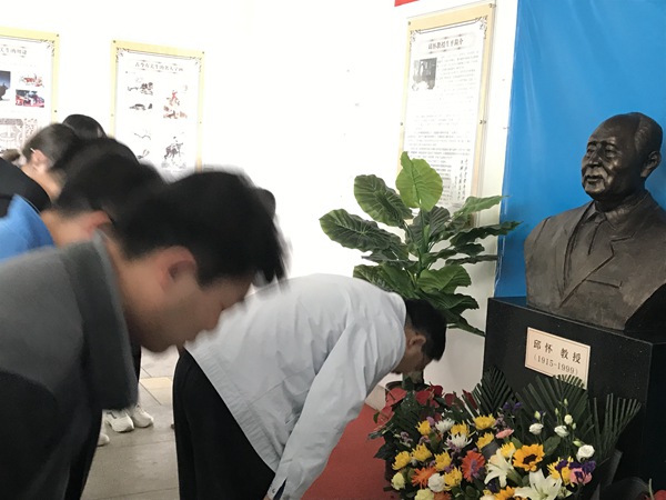 纪念仪式上,昝林森教授和研究生代表先后向邱先生塑像献花,师生们向塑像行三鞠躬,表达对邱怀教授的缅怀之情,传承老一辈科学家爱国奋斗精神。随后,大家来到邱先生史迹陈列馆,昝林森教授向师生们介绍了邱怀教授的生平以及生前用过的办公桌椅、不同历史时期的研究手稿及所获的各项荣誉、奖章和奖证,希望大家继承和发扬邱先生“生命不息、耕耘不止”的老黄牛精神,奋发有为、努力进取、争创佳绩。