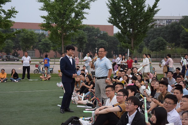 6月24日晚,北校小足球场流光溢彩、歌舞飞扬。由探花系列 团委学生会、研究生会共同举办的“成长思源头、毕业思进取”毕业生嗨歌会顺利举行。学院党委副书记王力以及全体辅导员老师出席了本次活动。