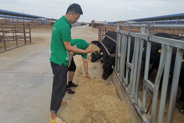 队员宋钰感动地谈到:“来到新疆,进一步认识到祖国的伟大,遥远的喀什颠覆着我们对干旱和风沙的认识。麦盖提县常年干旱少雨,气候炎热,不适于饲草如玉米、苜蓿等的生长,但该公司就是在这样的环境中克服重重困难,创新发展模式,解决饲草短缺的问题,提高养殖效率。虽然在牛场实习时间较短,但每次想到这些奋战在脱贫攻坚一线上的人们,我就不禁为他们艰苦奋斗的精神感动,也相信在我们的共同努力下,人们未来的生活水平会越来越高,边疆发展会越来越好!”