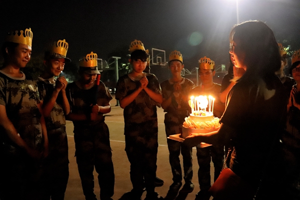 9.3日晚,“祝你生日快乐……”的歌声从军训场欢快地响起。学院精心组织,为军训期间过生日的20余名新同学举办集体生日会。连队带训教官、新生辅导员等来到生日会现场,送上暖心祝福。