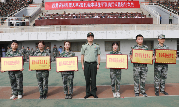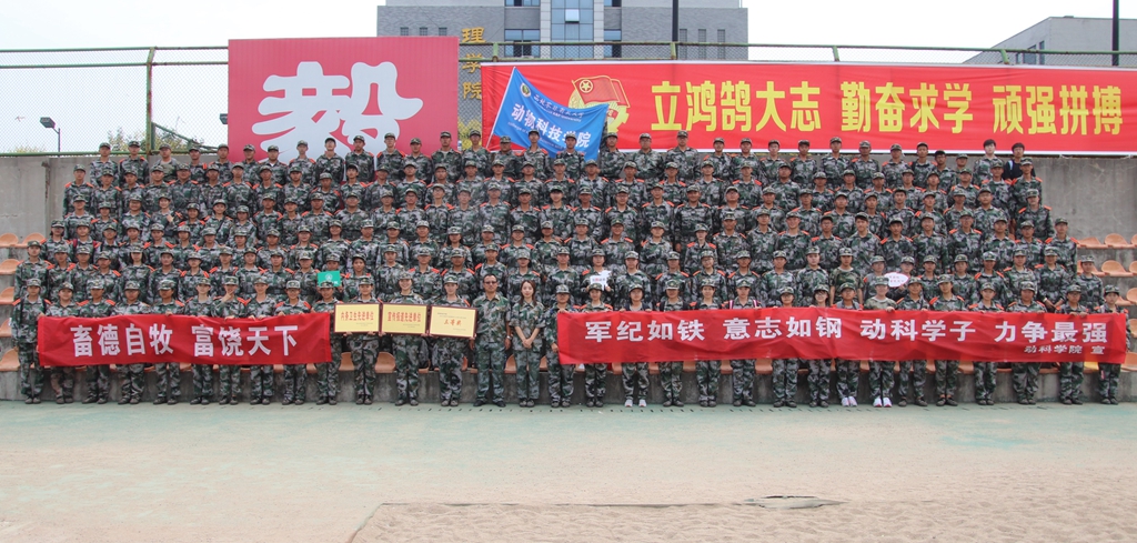 阅兵式上,在教官们的统一指挥下,动科学子表演了分列式、擒敌拳、警棍术等军事科目和手语操《感恩的心》。动科学子身姿挺拔、气宇轩昂,队列方阵动作整齐划一,步伐矫健有力,展现了昂扬向上、拼搏进取的青春风采。在为期14天的军训中,2019级全体本科新生坚持不懈、团结一心,顽强拼搏。姚军虎院长、曹军会书记、昝林森教授、曹斌云教授以及王力副书记在军训期间,多次赴训练场亲切慰问,为参训新生加油鼓劲,并送去牛奶、羊奶、自热火锅等畜牧科技产品。在学院领导的大力支持和全体同学的共同努力下,学院获评2019级本科生军事训练“宣传报道先进单位”和“内务卫生先进单位”,并在2019级新生爱国歌曲大合唱比赛中荣获三等奖。