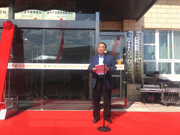 海原县委副书记、研究院董事长濮实代表海原县委、县政府致辞。向给予大力支持各位领导、专家及社会各届朋友表示感谢!研究院的成立标志着华润五丰农业有限公司向科技型企业迈出了坚实步伐,海原县高端肉牛产业发展目标的实现有了一个可靠助推器。将以探花系列 牛业团队和国家肉牛改良中心为中心,吸引国内外肉牛产业科研方面的优势团队和优秀人才,加入高端肉牛产业关键技术联合攻关,开展技术创新和集成示范,构筑高端引领的先发优势。