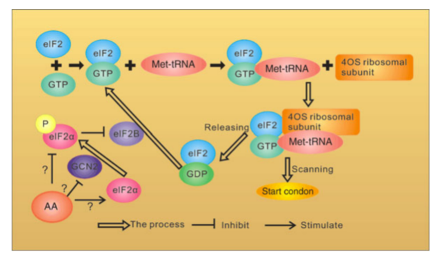 近年的研究表明,氨基酸不仅是合成蛋白质的底物,而且还是调控蛋白质合成的信号分子。氨基酸对蛋白质合成的调控作用包括正调控作用,也包括负调控作用。氨基酸能够通过相关信号通路在翻译等多层次调控相关基因的表达,翻译水平的调控作用通常发生在翻译的起始和信号传导途径。真核翻译起始因子2α的磷酸化是控制翻译起始的关键分子,氨基酸能够通过调控其磷酸化状态从而影响翻译起始。翻译起始中,mRNA与翻译起始复合物结合的另一调控途径是哺乳动物靶标雷帕霉素靶蛋白信号通路,其通路内的核糖体蛋白S6的磷酸化状态是调控关键。核糖体蛋白S6磷酸化状态的改变可能与细胞内总蛋白质的合成有关。该论文基于团队已有的研究成果,系统总结了氨基酸调控蛋白质合成分子机制的最新研究成果,并着重介绍了未来的研究趋势。