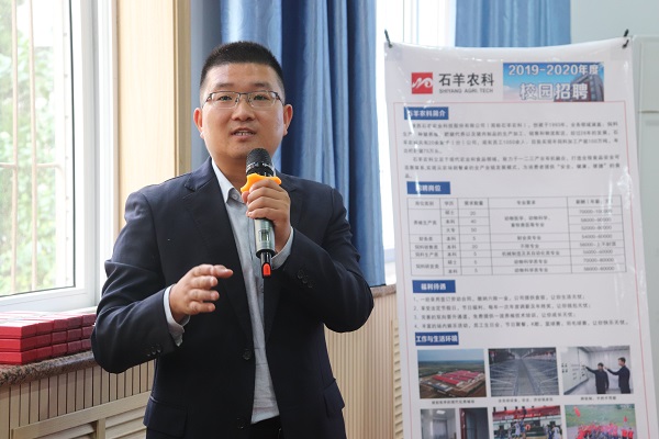 随后,乔冰涛以就业指导、成长晋升、薪酬福利和申请指南四方面为重点讲解。他以自身当年的求职经历为例,鼓励应届毕业生积极总结,学会“清零”,在求职过程中以独立自主的心态,寻找新的人生起点,积累宝贵经验,练就过硬本领。在说到集团发展前景的过程中,他指出,目前在可防可控不可治的非洲猪瘟影响下,行业必定迎来一次专业性的升级,各行各业需求高,前景好,应用广阔,希望同学们能把握机会,加入拥有科学人才培养模式的企业,保证自身能实现潜力最大化。