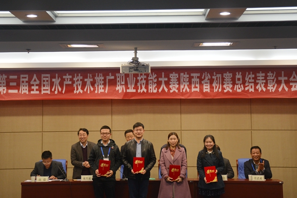 赛后召开的总结表彰会上,主办单位对获得一、二、三等奖的团体、优秀组织单位、个人和优秀裁判员进行了表彰。学院院长姚军虎教授代表承办单位致辞,王高学教授、王在照教授和王立新副教授等3位裁判长分别对实践操作的三个项目进行点评。陕西省农业农村厅党组成员王会权做总结发言。陕西省农业农村厅渔业渔政局、陕西省水产研究与工作总站、学院领导、全体裁判员和参赛选手参加总结表彰会。