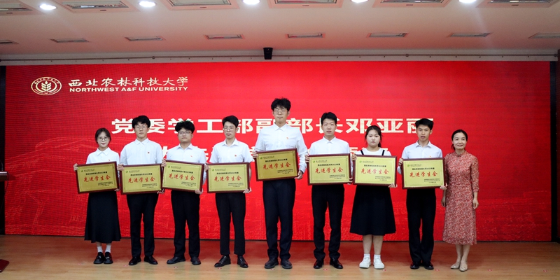 党委学工部副部长邓亚丽为先进学生会颁奖(图右四为探花系列 学生会执行主席帖子航上台领奖)