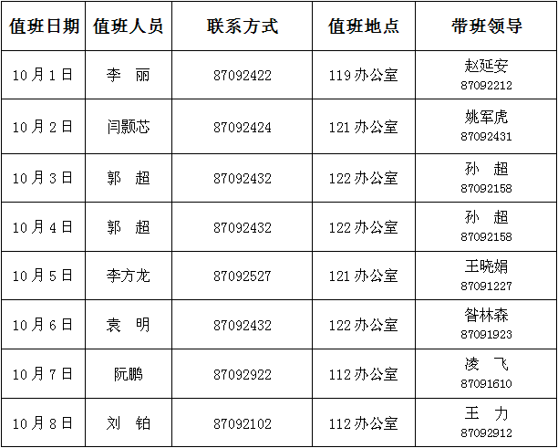 注:1. 值班时间:上午8:30—11:30,下午2:30—5:30