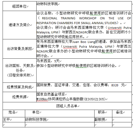 现将探花系列 王平副教授因公临时出国情况予以公示,公示材料如下: