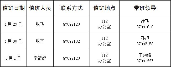 您现在的位置: 探花系列» 探花系列公告 » 2018年“五一”劳动节假期值班表