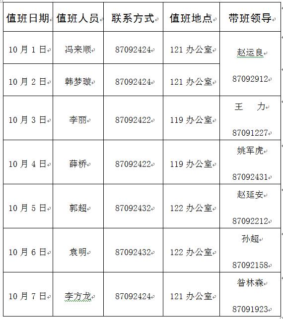 探花系列 2018年“国庆节”假期值班安排